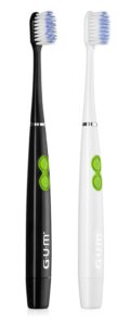 Med 12 500 soniske vibrasjoner per minutt gir GUM SONIC eltannbørste deg en ekstra effektiv rengjøring hver gang du pusser tennene. Den fjerner opptil 47 ganger mer plakk under tannkjøttkanten*. De myke og tynne børstehårene rengjør også skånsomt og effektivt mellom tennene.